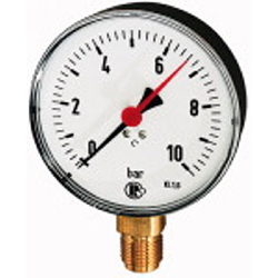 Standardmano. mit Stahlblechgeh., Einfachskala in bar, Anschluss radial unten, G 1/2, Güteklasse 1,6, Messber. 0 - 40,0 bar, Ø 160. Rohrfedermanometer in Standardausführung.