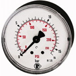 Standardmano., Kunststoffgeh., Doppelskala bar/psi, Anschluss hinten zentr., G 1/4, Gütekl. 1,6, Messber. 0 - 4,0 bar/58 psi, Ø 63. Rohrfedermanometer in Standardausführung.