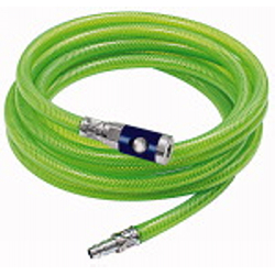 PVC-Gewebeschlauch-Set, Sicherheitskupplung, Betriebstemp. -15 °C bis 60 °C, Schlauch-ø 15x9, PN bei 20 °C max. 12 bar, Länge 5 m. Flexibler, druckbeständiger und abriebfester Standardschlauch. Hohe Sicherheit durch Signalfarbe – leuchtgrün. Konfektioniert mit Druckknopf-Sicherheitskupplung NW 7,4 und Einstecktülle Stahl verzinkt.