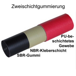| Aussendecke: | Polyurethan beschichtet, Standardfarbe rot.