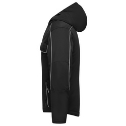 Eigenschaften und Vorteile - Robustes, strapazierfähiges Softshellmaterial - Wind- und wasserabweisend (2.000mm Wassersäule) - Atmungsaktiv und wasserdampfdurchlässig (2.000g/m²/24h) - Stehkragen innen mit weichem Fleece - Abnehmbare, regulierbare Kapuze - Ergonomisch geformte Ärmel, innenliegende Armbündchen - Verlängertes Rückenteil - Durchgehend unterlegter Reißverschluss mit Windschutzblende und Kinnschutz - Seitentaschen und Innentasche mit Reißverschluss - Brusttaschen mit losem Taschenbeutel zur einfachen Veredelung - Diverse Innentaschen - Reflexelemente (ohne Schutzfunktion/keine PSA) an Taschen, Ärmeln, Schulter und Rückenteil - Reißverschluss zur Rückenveredelung - Reißverschlüsse: YKK - Knöpfe und Reißverschlüsse: - Um Beschädigungen am zu bearbeitenden Produkt zu vermeiden, sind alle Knöpfe und Reißverschlüsse verdeckt verarbeitet.