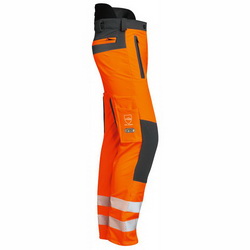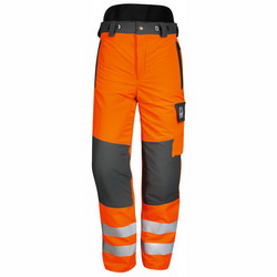 Normen und Einstufung - Zertifiziert nach EN ISO 20471 Kl. 2 - Zertifiziert nach EN 381 Klasse 1 Form A - FPA-Profi zertifiziert Eigenschaften und Vorteile - mit 7-lagiger Schnittschutzeinlage - elastisch - wasser- und schmutzabweisend - zwei Seitentaschen mit Reißverschluss - Gesäßtasche mit Reißverschluss - Hinterhose der Hosenbeine mit einem Reißverschluss zur Belüftung - Gürtelschlaufen - Knöpfe für Hosenträger - Bund der Hinterhose erhöht, körperformangepasst und luftdurchlässig - Beinenden aus wasserdichtem, robustem Gewebe Reflexstreifen - 2 x 5 cm Reflexstreifen silber je Hosenbein Logo ohne Logo