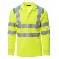Normen und Einstufung - EN ISO 20471 - Klasse 2 Eigenschaften und Vorteile - zweifarbiges, gut sichtbares Herren-Poloshirt mit Reflexstreifen - langärmelig - mit 3 Knöpfen Ton-in-Ton mit Perlmutteffekt - Kragen und Ärmelrand aus Feinripp mit feinem Profil in Kontrastfarbe - Seitenschlitze - Nackenband