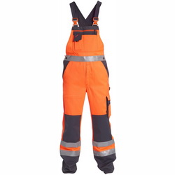 - Zweifarbige Arbeitslatzhose mit hohem Rückenteil und breitem, elastischen Zwischenstück.
