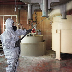 Schutzes, da er gegen eine große Bandbreite von Chemikalien und vor Gasen schützt