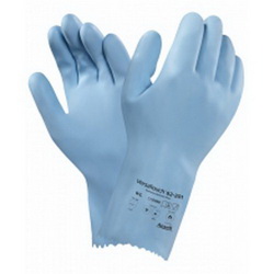 - Handschuh aus blauem Naturgummilatex mit Trägermaterial.