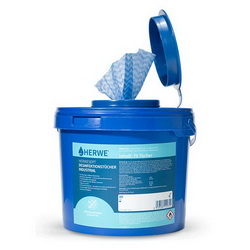 Herwesept Desinfektionstücher Industrial sind in Herwesept Schnelldesinfektion getränkt.