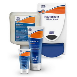 Stokoderm® Advanced schützt aufgrund der Emulsionsgrundlage (Öl-in-Wasser) in Kombination