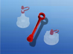 Käppchen mit Halteband PVC, rot, für Tropfverschluss