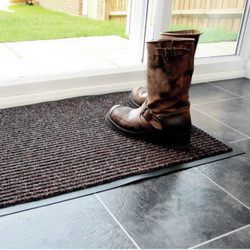 Robuste Schmutzfangmatte mit grober, gerippter Oberfläche.