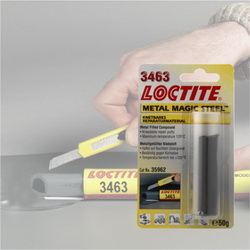Knetstift mit Stahl gefüllt. Haftet an feuchten Oberflächen und trocknet