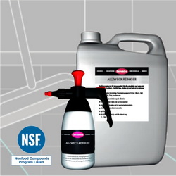 Gebrauchslösung wird entweder auf die zu reinigende Fläche aufgesprüht oder mit Schwamm