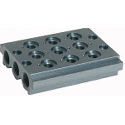 Mehrfach-Grundplatte für die Wegeventile, Grundplatte für 3 Ventilpositionen, für Ventile Anschluss G 1/4. Grundplatten aus Leichtmetalllegierung für 2 - 10 Ventilpositionen.