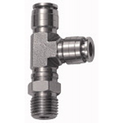 T-Steckverschraubung, drehbar, L-Form, R 1/8 a., für Schlauch-Außen-Ø 8 mm, Arbeitsdruck max. 20 bar, Edelstahl 1.4404. Für den Einsatz in aggressiven Umgebungen und bei korrosiven Medien, welche sowohl in der Chemie- und Lebensmittelindustrie als auch im Bereich Verpackung, Druckerei und Seefahrt zum Einsatz kommen.