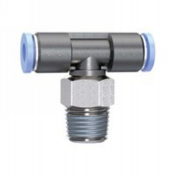 T-Steckverschraubung »Blaue Serie« mini, drehbar, R 1/8, für Schlauch-Außen-Ø 6 mm, Arbeitsdruck max. 10 bar, Kunststoff/MS vern.. Unsere Schnellsteckverbinder-Serie aus Kunststoff bzw. vernickeltem Messing in platzsparender Minibaureihe.