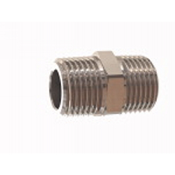 Doppelgewindenippel, R 1 1/4 a., R 1 1/2 a., SW 50, Messing vernickelt, Arbeitsdruck max. 25 bar, Betriebstemp. max. 150 °C. Für Luft, Wasser, Öl, Dampf etc. einsetzbar.