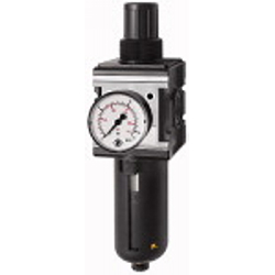 Filterregler »multifix« mit PC-Behälter, Schutzkorb u. Mano., 5 µm, BG 4, G 3/4, PE max. 16 bar, Regelber. 0,5 - 10 bar, Ablass HA. Vordruckunabhängiger, rücksteuerbarer Membrandruckregler mit Sekundärentlüftung in Kombination mit einem Zentrifugalabscheider.