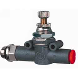 Drosselventil »lineonline«, Durchfluss beidseitig, Gewinde - Schlauch, G 1/4, für Schlauch-Ø 6 mm, Betriebsdruck max. 10 bar. Regelt den Lufteinlass und somit die Geschwindigkeit von pneumatischen Einheiten.