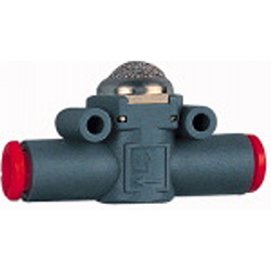 Schnellentlüftungsventil »lineonline«, mit Schalldämpfer, Schlauch - Schlauch, für Schlauch-Ø 6 mm, Betriebsdruck 1 - 10 bar. Die Entlüftung wird durch Verwendung eines rostfreien Schalldämpfers oder durch Verwendung eines Einsteckverbinders mit Luftabfuhr gedämpft.