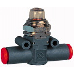 Druckanzeiger »lineonline«, Schlauch - Schlauch, für Schlauch-Ø 8 mm, Betriebsdruck 2 - 10 bar. Im drucklosen Zustand erscheint die Druckanzeige transparent. Unter Druck zeigt die Druckanzeige ein rotes Signal.