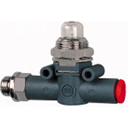 Druckanzeiger »lineonline«, Gewinde (Eingang) - Schlauch (Ausgang), G 1/4, für Schlauch-Ø 6 mm, Betriebsdruck 2 - 10 bar. Im drucklosen Zustand erscheint die Druckanzeige transparent. Unter Druck zeigt die Druckanzeige ein rotes Signal.