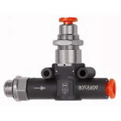 Pneumatisch entsperrbares Rückschlagventil »lineonline«, Gewinde - Schlauch, G 1/4, für Schlauch-Ø 8 mm, Betriebsdruck max. 10 bar. Zum Anhalten und Positionieren der Zylinderbewegung: Liegt ein Signal am Steuerluftanschluss an, kann die Druckluft vom und zum Zylinder fließen. Liegt kein Steuersignal mehr an, so sperrt das Rückschlagventil die Zylinder-Abluft. Der Zylinder wird angehalten.