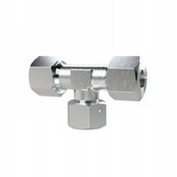 Einstellbare T-Verschraubung, Dichtkegel, 360° drehbar, Mutter M24x1,5 i., Rohr-Außen-Ø 16 mm, PN max. 400 bar, Stahl verzinkt.
