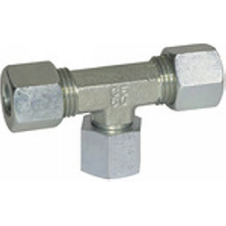 Einstellbare T-Verschraubung, Dichtkegel, 360° drehbar, Mutter M36x2,0 i., Rohr-Außen-Ø 28 mm, PN max. 160 bar, Stahl verzinkt.