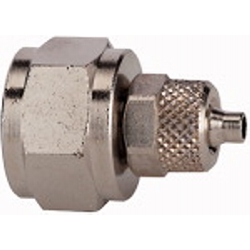Gerade Aufschraubverschraubung, G 3/8 i., für Schlauch 6/4 mm, SW 20, Arbeitsdruck max. 18 bar, Messing vernickelt.