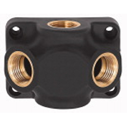 Durchgangsverteilerdose, Eingang/Durchgang G 3/4, Anschluss 2 x G 1/2, Betriebsdr. max. 15 bar, Temp. -10 °C bis 50 °C, Kunststoff. 1- 2- bzw. 3-fach-Verteilerdosen aus hochfestem, glasfaserverstärktem Kunststoff (PA6 GF 30) mit großer Anwendungsvielfalt. Wahlweise bis zu 3 Anschlussmöglichkeiten sowie 2 Gewindegrößen für das Eingangsgewinde. Zur Weiterführung des Mediums optional mit Durchgangsgewinde unten. Alle Verteilerdosen haben einen robusten Messing-Gewindeeinsatz für hohe Anzugsmomente und sind TÜV zertifiziert.