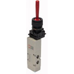 5/2-Wegeventil, manuell, Handhebel, monostabil, Anschluss G 1/8, Betriebsdr. 2,5 - 10 bar, Betriebstemp. -10 °C bis 60 °C, Alu.