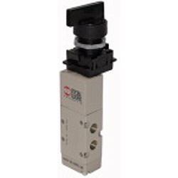 5/2-Wegeventil, manuell, Drehhebel l., bistabil, 3-Schalt, Anschluss G1/8, Betriebsdr. 1,0 - 10bar, Betr.temp. -10°C bis 60°C, Alu. 3 Schaltstellungen sind nur in Verbindung mit einem weiteren Wegeventil möglich.