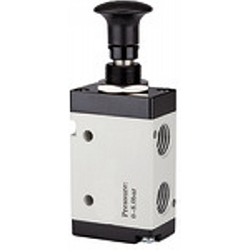 3/2-Wegeventil, Druckknopfbetätigung, »3L«, Schalttafeleinbau, G3/8, Betriebsdr. 0-8 bar, Temperaturber. -20°C bis 70°C, 1500l/min. Handhebel rastet nach Druck- bzw. Ziehbetätigung ein.