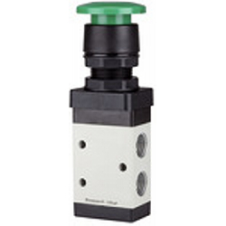 3/2-Wegeventil, manuell »M3«, Pilztaster, NC, monosta., Schalttafeleinbau, G 1/4, Betriebsdr. 0-10 bar, Temp. -20°C bis 70°C, grün. 3/2-Wegeventile - handbetätigt, für Schalttafelaufbau -