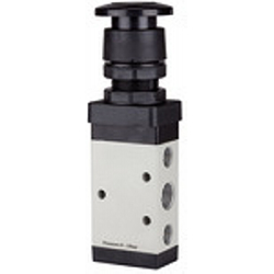 5/2-Wegeventil, manuell »M5«, Pilztaster, monostabil, Schalttafeleinbau, G 1/8, Betriebsdr. 0 - 10 bar, Temp. -20°C bis 70°C, schw. 5/2-Wegeventile - handbetätigt, für Schalttafelaufbau -