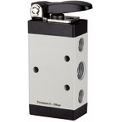 5/2-Wegeventil, manuell betätigt, »M5«, kurzer Hebel, monostabil, G 1/4, Betriebsdruck 0 - 10 bar, Temp. -20 °C bis 70 °C. 5/2-Wegeventile - handbetätigt, für Schalttafelaufbau -