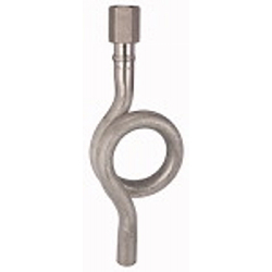Wassersackrohr in Kreisform mit Schweißanschluss an der Druckentnahmeseite, nach DIN 16282, G 1/2, aus Stahl 1.0039, 1.0345. Als Kühlstrecke für Flüssigkeiten, Gase und Dämpfe bei der Druckmessung. Bei der Verwendung eines Wassersackrohres kühlt das Medium auf eine mit dem Manometer verträgliche Temperatur ab und schützt es vor Pulsationen des Messstoffes. Im Wassersackrohr bildet sich ein Kondensat, das ein Eindringen des heißen Messstoffes in das Druckmessgerät unterbindet. Es empfiehlt sich, vor Inbetriebnahme der Druckleitung kühlende Sperrflüssigkeit in das Wassersackrohr einzufüllen.
