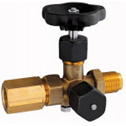 Manometer-Absperrventil, Zapfen - Spannmuffe, DIN 16271, Form A, aus Messing, G 1/2, PN 250 bar, SW 27, max. 120 °C. Sie dienen als Absperr- und Drosselorgan für Druckmessgeräte, zur Messung von Flüssigkeiten, Gasen und Dämpfen.