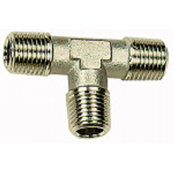 T-Stück, außen/außen/außen, R 1/8, SW 10, Betriebsdruck max. 60 bar, Betriebstemperatur max. 150 °C, Messing vernickelt.
