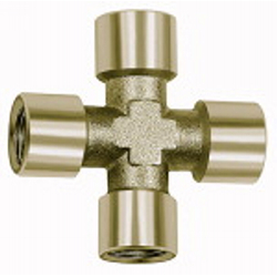 Kreuzstück, 4 x innen, G 1/4, SW 13, Betriebsdruck max. 60 bar, Betriebstemperatur max. 150 °C, Messing vernickelt.