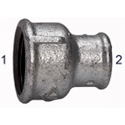 Muffen 240, reduzierend, IG/IG, Rp 1, Rp 3/4, Betriebstemp. -20 °C bis 300 °C, schwarzer Temperguss, feuerverzinkt, DIN EN 10242. Nach DIN EN 10242 (vormals 2950). Die klassische und am weitesten verbreitete Verschraubungsserie im Rohrleitungsbau. Unsere Tempergussfittings zeichnen sich durch eine hohe mechanische Beanspruchbarkeit und durch eine Oberflächengüte nach DIN 2444 aus. Sie sind vollkommen mit einer Reinzinkschicht überzogen und somit trinkwassergeeignet sowie gegen Rost geschützt. Diese Tempergussfittings finden Verwendung im Maschinenbau, Außenleitungen, Kaltwasserleitungen und in Heizungsleitungen.