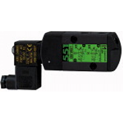3/2-5/2-Wegeventil, NAMUR, Alu eloxiert, Betriebstemp. -25°C bis 60°C, Differenzdr. 2-10 bar, G 1/4 (1), G 1/8 (3+5), 230 V, 50 Hz. Vorgesteuertes 3/2-5/2-Wegeschieberventil mit Gewindeanschlüssen und Lochbild nach NAMUR. Die Ventile werden mit zwei Adapterplatten geliefert, die jeweils entsprechend der gewünschten Funktion 3/2- oder 5/2-Wege einzusetzen sind. Einschalten durch Dauersignal, beim Ausschalten stellt der Druck den Kolben zurück. Handhilfsbetätigung standardmäßig vorhanden.