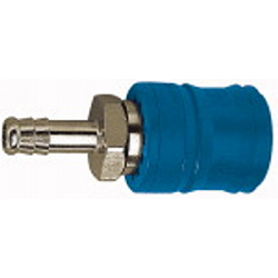Sicherheitskupplung NW 7,4, Typ KE, Messing vern., Tülle LW 6, Betriebsdruck max. 12 bar, Mediums-/Umgebungstemp. -20°C bis 60°C. Einhand-Sicherheitskupplungen mit zweifacher Verriegelung. Das Kuppeln erfolgt wie bei Standardkupplungen durch einfaches Eindrücken des Steckers in die Kupplung. Beim Entkuppeln wird die erste Verriegelung durch Zurückschieben der Verriegelungshülse freigegeben. Das Kupplungsventil schließt. Jetzt kann die komprimierte Luft aus dem Stecker und im Schlauch entweichen. Durch nochmalige Betätigung der Entriegelungshülse wird das zweite Verriegelungssystem freigegeben. Erst jetzt kann die Verbindung sicher gelöst werden.