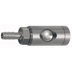 Druckknopf-Sicherheitskupplung NW 7,4, drehbar, ES 1.4404, Tülle LW 9, Betriebsdr. max. 12 bar, Med.-/Umgeb.temp. -20°C bis 150°C. Hochwertige, robuste und langlebige, mit einer Hand bedienbare Schnellverschlusskupplung in Sicherheitsausführung.