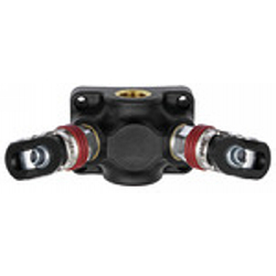 Endverteilerdose Kunststoff, 2 Schwenk-Sicherheitskpl. NW 7,2, Eingangsgew. G 1/2, Betriebsdruck max. 12 bar, Temp. -10°C bis 50°C. 2- bzw. 3-fach-Verteilerdosen aus hochfestem, glasfaserverstärkten Kunststoff mit großer Anwendungsvielfalt. Wahlweise mit 2 oder 3 fertig konfektionierten Schwenk-Sicherheitskupplungen.
