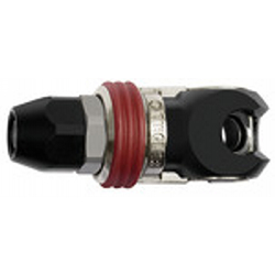 Schwenk-Sicherheitskupplung NW 8, ISO 6150 C, Stahl, Schlauchanschluss 8x12, Betriebsdruck max. 25 bar, Temp. -20 °C bis 100 °C. Schwenk-Sicherheitskupplung mit freiem Durchgang. Der Stecknippel wird in den Kupplungskörper gesteckt und mit einer ca. 90°-Bewegung die Verbindung hergestellt. Sobald der rote Ring in der vorgesehenen Nut einrastet, ist eine sichere Verbindung hergestellt. Um die Verbindung wieder zu lösen, muss der rote Ring zurückgezogen und der Stecknippel bis zum Anschlag in die Ausgangsposition geschwenkt werden. Durch eine Entlüftungsbohrung auf der Rückseite der Kupplung, wird beim Entkuppeln entlüftet.