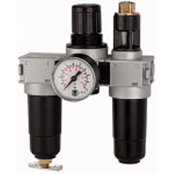 Wartungseinheit 3-tlg. »multifix-mini« mit Metallbehälter, BG 0, G 1/4, Eingangsdruck max. 12 bar, Regelbereich 0,5 - 10 bar. Dreiteilige Wartungseinheiten, bestehend aus einem vordruckunabhängigen Membrandruckregler mit Sekundärentlüftung in Verbindung mit einem Zentrifugalabscheider und einem Proportionalöler.