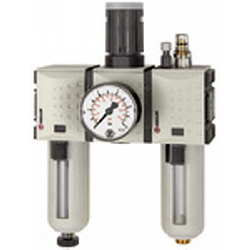 Wartungseinheit 3-tlg. »FUTURA«, PC-Behälter, Schutzkorb und Manometer, BG 4, G 3/4, Regelbereich 0,5-10 bar, Kondensatablass: HA. Dreiteilige Wartungseinheiten in modernem Design und mit hervorragenden Durchflusswerten. Arretierbarer und abschließbarer Membrandruckregler mit Sekundärentlüftung. Öleinfüllung während des Betriebs möglich.