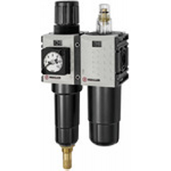 Wartungseinheit 2-tlg. »FUTURA-mini«, Metallbehälter, Kompaktmano, BG 0, G 1/4, PE 1,5-12 bar, Regelbereich 0,5-10 bar, Ablass: VA. Zweiteilige Wartungseinheiten in modernem Design und mit hervorragenden Durchflusswerten. Arretierbarer Membrandruckregler mit Sekundärentlüftung.