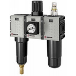 Wartungseinheit 3-tlg. »FUTURA-mini«, Metallbehälter, Kompaktmano, BG 0, G 1/4, PE 1,5-12 bar, Regelbereich 0,5-8 bar, Ablass: VA. Dreiteilige Wartungseinheiten in modernem Design und mit hervorragenden Durchflusswerten. Arretierbarer Membrandruckregler mit Sekundärentlüftung.